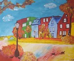 bound where I don’t belong”. Opgebouwd uit primaire kleuren die symbool staan voor de basisbehoeften van de mens. 3D rand meegeschilderd.